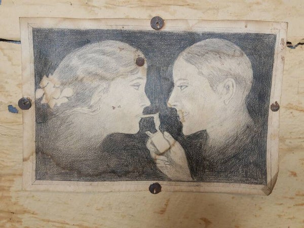 Deze geweldige kist hebben we vernoemd naar een van de vorige eigenaren. Er zijn er meerdere geweest en een ieder heeft zijn naam en dus ook zijn bestaan meegegeven aan dee kist. En niet alleen van buiten maar ook van binnen. Kijk eens naar die prachtige tekening!
