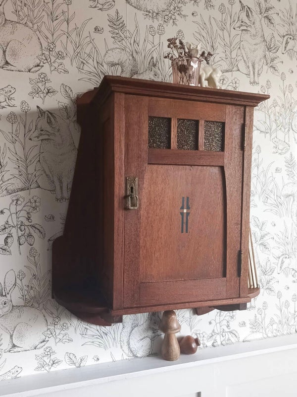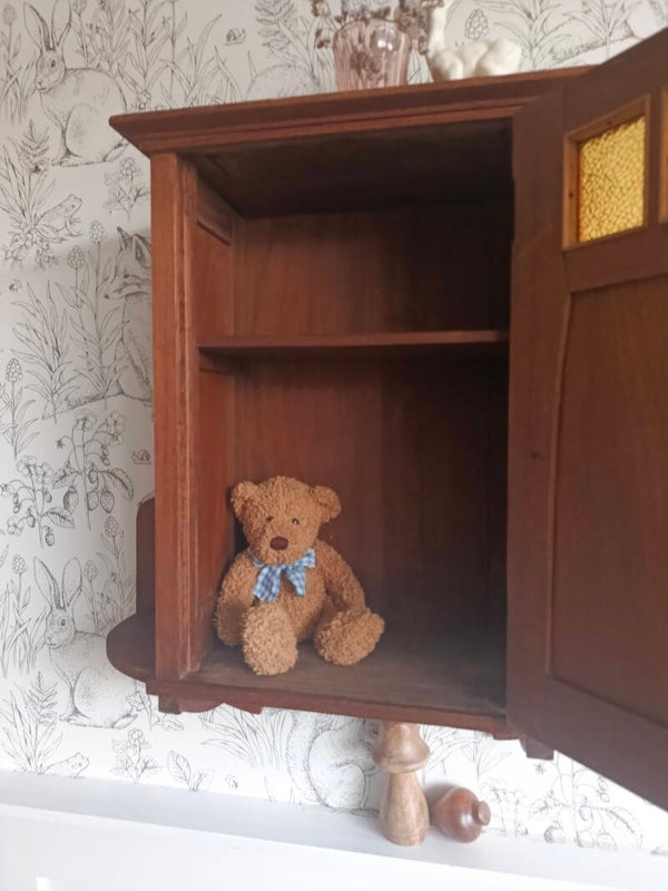 Leuk, dit jaren '30 hangkastje waar je binnenin en bovenop veel kwijt kunt!
