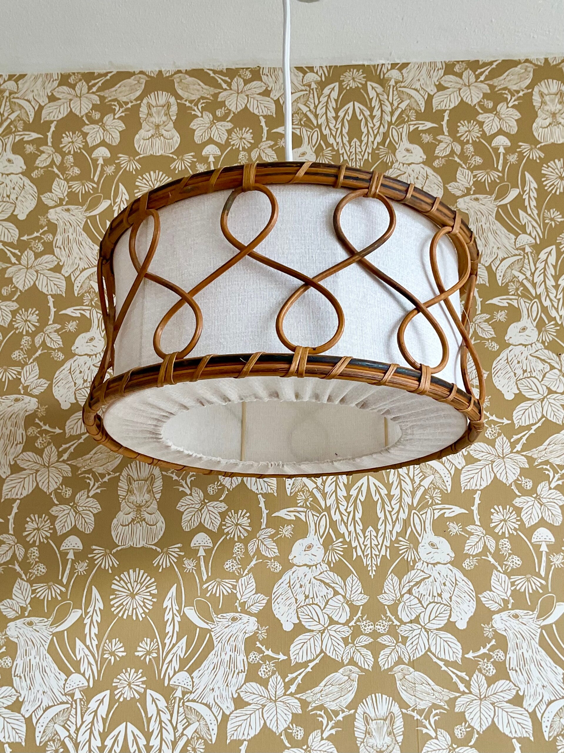 De vintage rotan lamp hebben we opgeknapt en een nieuw fris stofje gegeven.