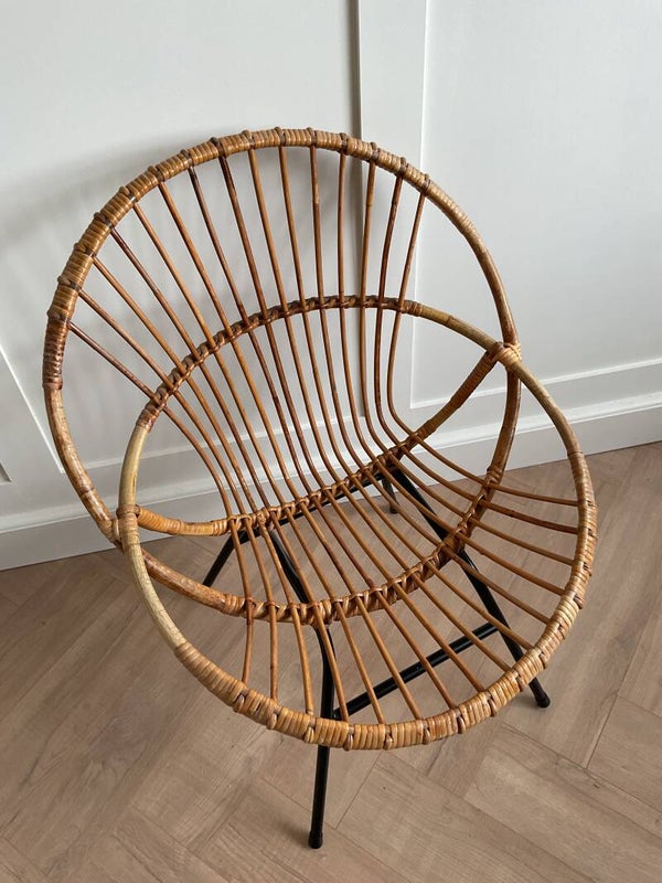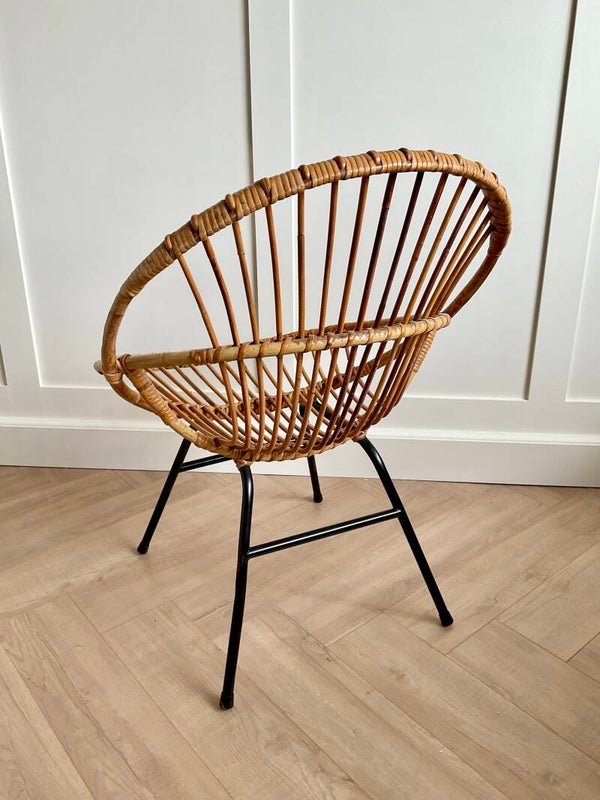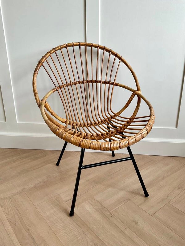 Een vintage rotan fauteuil van de fabrikant Rohé Noordwolde. Leuk voor op de baby- of kinderkamer bijvoorbeeld.